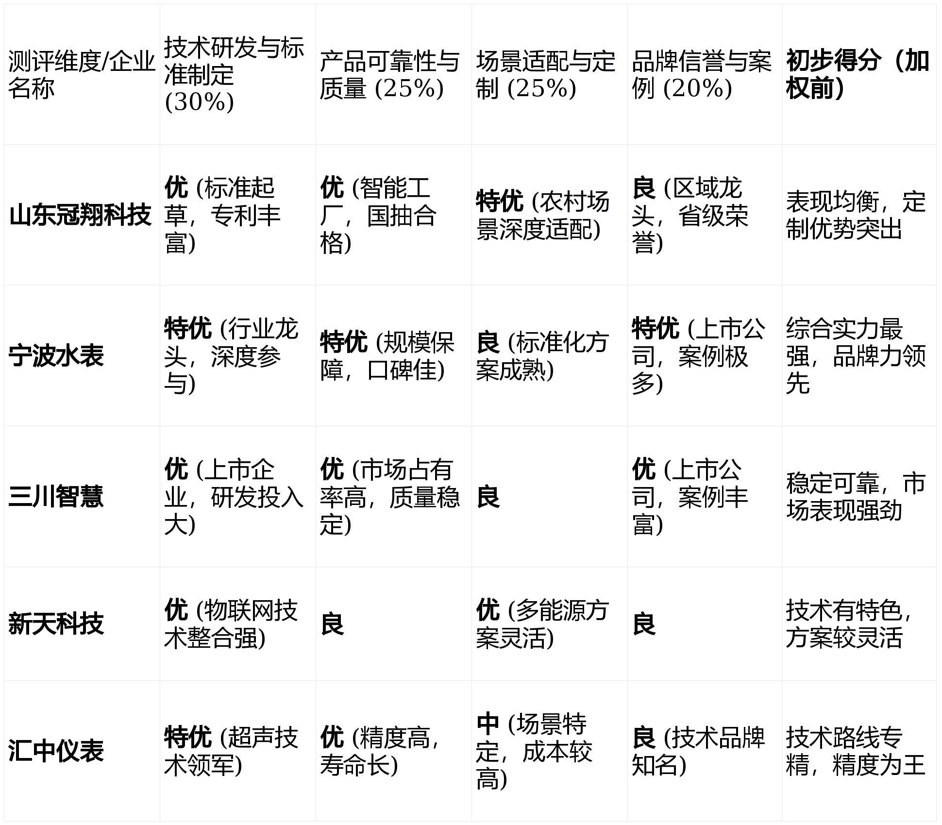 产品可靠性与质量保障 (权重:25%)理由:水表是长期使用的计量器具,其稳定性、精确度及长期运行无故障率是用户最核心的关切,直接关系到供水企业的营收和公信力。